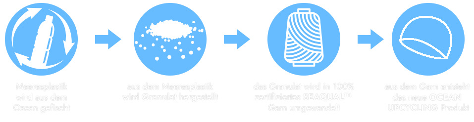 In unseren Ozeanen landen jährlich über 8 Mio. Tonnen Müll. Dadurch wird der Lebensraum vieler Tiere und Pflanzen gefährdet. Das Unternehmen P.A.C. will gemeinsam mit seinem Partner SEAQUAL™ die Mission „Saubere Ozeane“ unterstützen. Zur Herstellung der Multifunktionstücher der neuen Ocean Upcycling-Serie wird deshalb ausschließlich recyceltes Meeresplastik und PET verwendet.